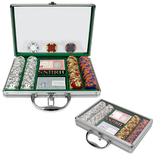 This handy chip case has the durability of an aluminum chip case and includes a clear, scratch-resistant plexiglass cover to easily view the contents of the case. The case is produced from the finest aircraft aluminum and reinforced throughout, and yet it is lightweight. The interior is green felt with space for 200 chips, 5 dice, and 2 decks of cards. AS A BONUS WE HAVE INCLUDED TWO DECKS OF CARDS AND 5 DICE IN THIS SET. It is at our discretion to replace playing cards with a similar product of equal or higher quality at any time